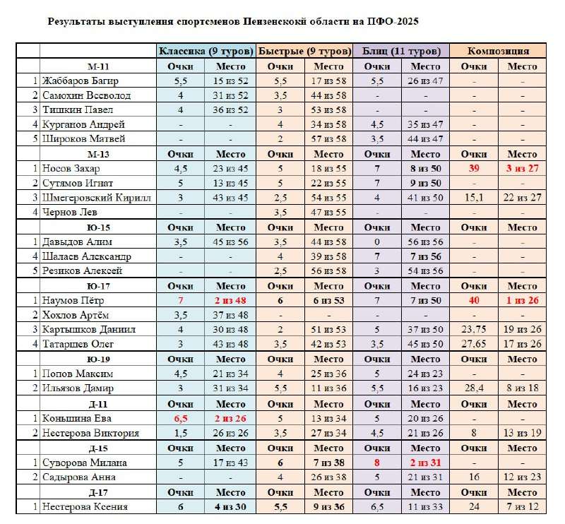 Призёры ПФО в дисциплине "Шахматы" и "Композиция":