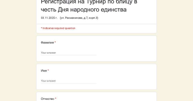 🇷🇺 30 ноября состоится открытый турнир по блицу для детей.